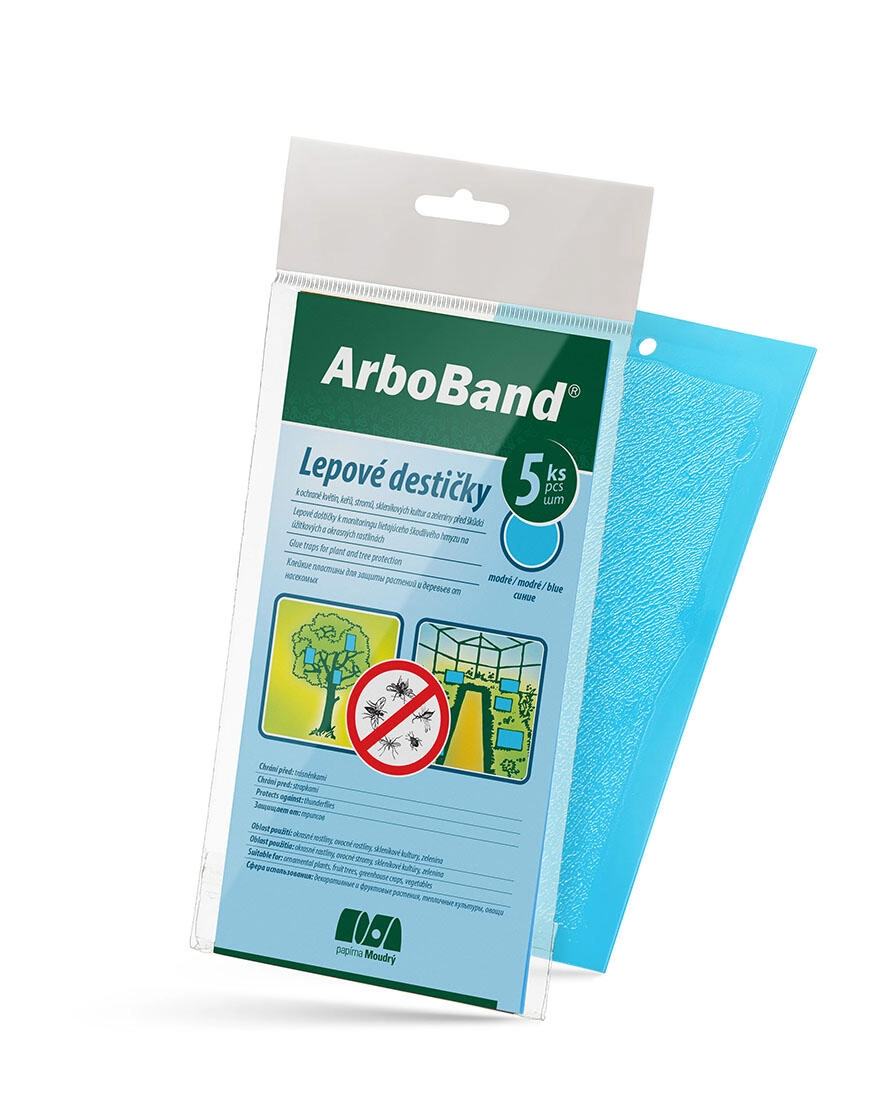 Universelle blå klæbefælder ArboBand beskytter effektivt planter mod skadedyr indendørs, i drivhuse og i haven. Stærk klæbeevne, uden kemi og nem ophængning sikrer hurtig fangst af trips, minedyr, mellus og sørgemyg. Pakken indeholder 5 stk.