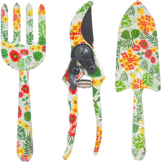 I pakken finder du en jordløsner til løsning af jord, plantning og lugning, en håndskovl til omplantning og arbejde med substrat samt en havesaks til præcis beskæring af planter. Kvalitetsmaterialer i jern og aluminium sikrer holdbarhed og lang levetid.