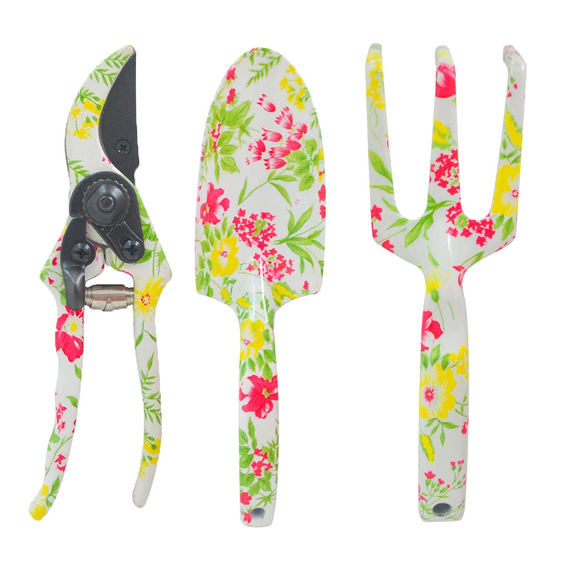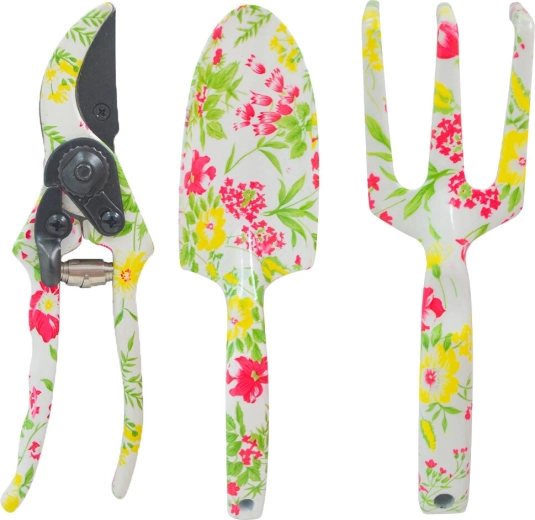 Dette stilfulde 3-delte sæt af håndredskaber er perfekt til daglig pleje af blomster, krydderurter og mindre buske. Det kombinerer praktisk funktion med elegant design i hvid med lyserødt blomstermotiv, så det glæder ikke kun i brug, men også som gave.