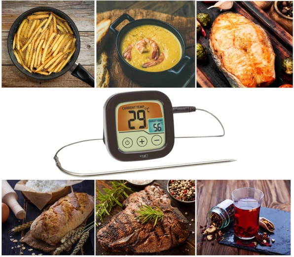 Dette digitale termometer er en uundværlig hjælper til både ovnbagning og grillning. Takket være den præcise sensor i rustfrit stål og den overskuelige farveskærm har du altid kødets temperatur under kontrol. Når måltemperaturen er nået, giver en lydalarm besked, så du undgår både udtørring og undertilberedning.