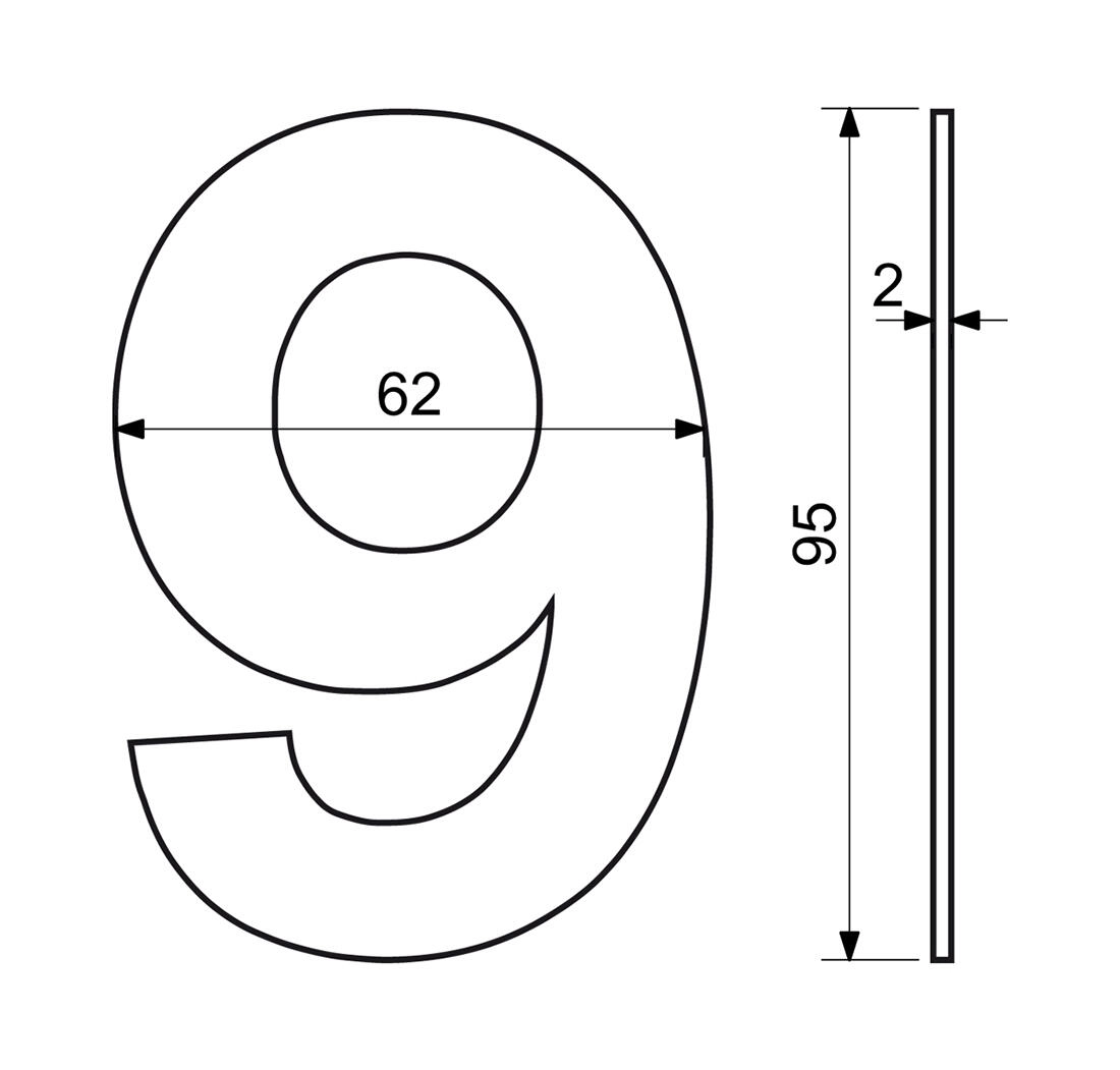 Elegant husnummer 9 i rustfrit stål med sort mat overflade. Højden på 95 mm sikrer god læsbarhed, og monteringen er nem takket være den dobbeltsidede klæbestrimmel i pakken. Ideel til glatte og middel-ru overflader.