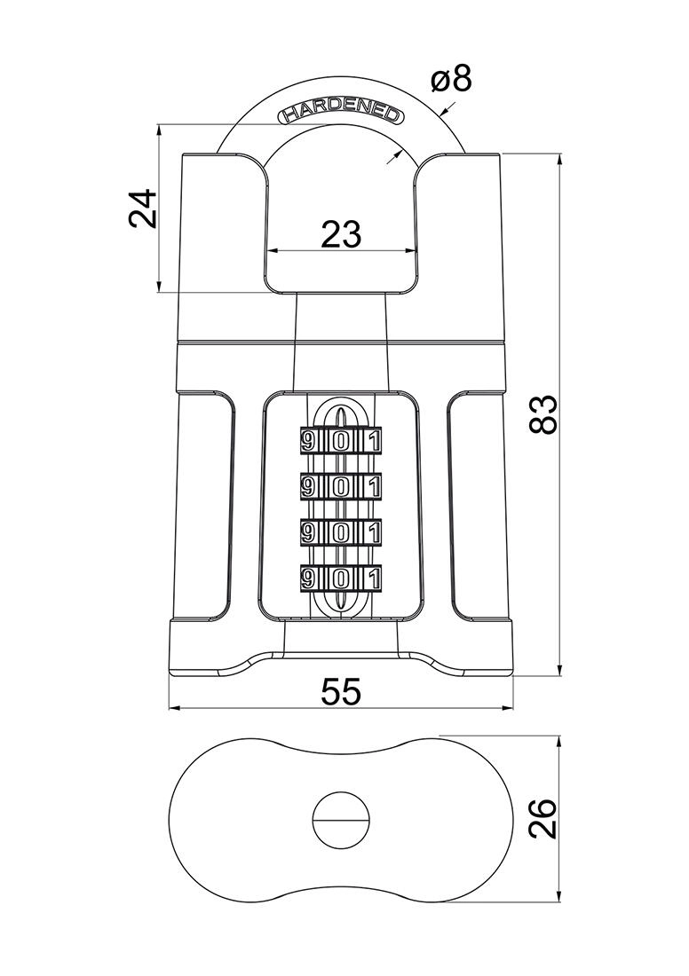Kodelås hængelås med bøjlebeskytter – sort