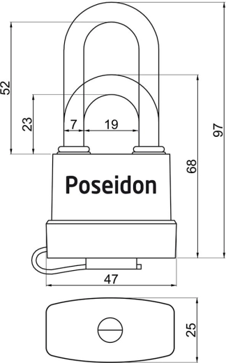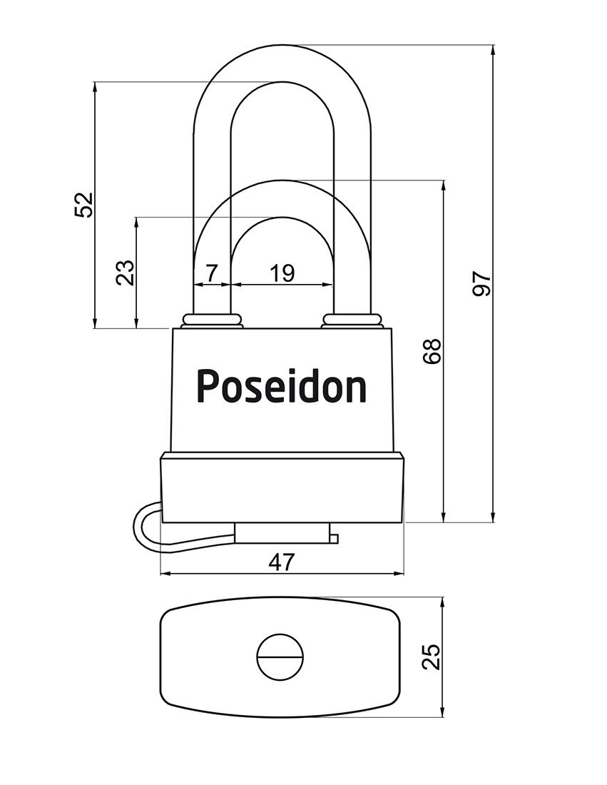 Hængelås POSEIDON 40 vandtæt med forlænget bøjle og cylinderafdækning