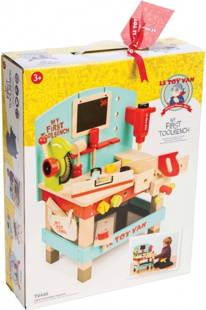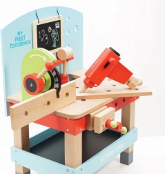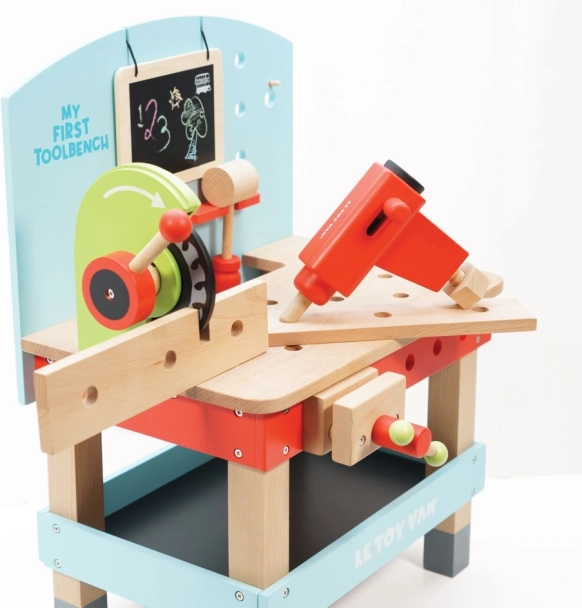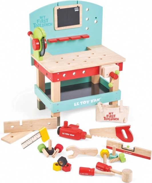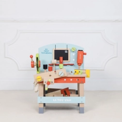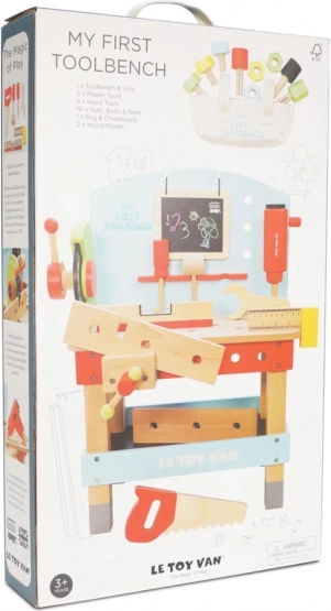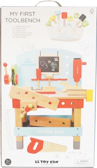"Mit første arbejdsbænk med værktøj" er ideel til små gør-det-selv-entusiaster, der ønsker at udforske værktøjs- og værkstedsverdenen. Dette legetøj er lavet af højkvalitets FSC-træ, hvilket sikrer både langvarig holdbarhed og miljøvenlighed. Det indeholder 20 dele, herunder boremaskine, rundsav, klemme, sav, hammer, skruetrækker og mange andre værktøjer. Der er også en tavle til kridttegning til kreativ udtryk.