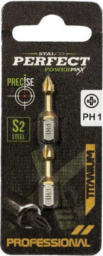 PHILLIPS PH1-bit med en længde på 25 mm fra den professionelle STALCO TITAN-serie er beregnet til dagligt arbejde i værkstedet og på byggepladsen. Den tilbyder sikker føring af skruen, minimerer afrivning af krydskærv og sikrer stabil overførsel af drejningsmoment ved brug med både akku- og netdrevne skruetrækkere.