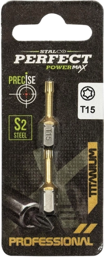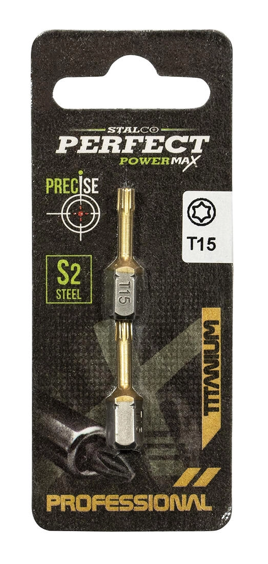 Den pålidelige STALCO TITAN-bit i standarden TORX T15 giver præcist greb og mindsker risikoen for at ødelægge skruehovedet. Takket være længden på 25 mm egner den sig til de fleste almindelige opgaver i værkstedet, på byggepladsen og ved møbelmontering.