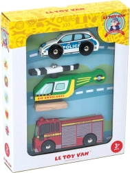 Vi præsenterer sæt af redningsbiler fra Le Toy Van – den perfekte gave til børn. Denne legetøj støtter fantasifuld leg med tre redningskøretøjer: helikopter, politibil og brandbil. Hver af dem er lavet af etisk bæredygtigt gummitræ og malet med ikke-giftige vandbaserede farver, hvilket garanterer sikkerhed under leg.