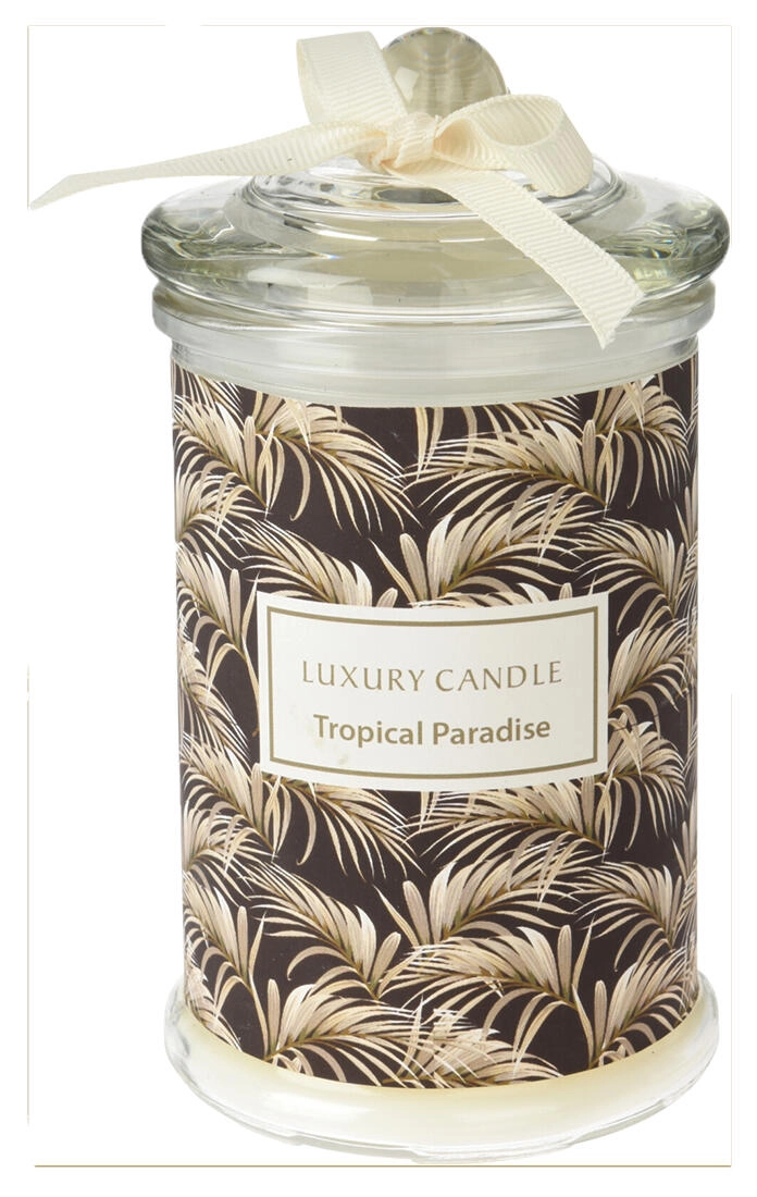 Der findes tre moderne dekorer og naturinspirerede dufte: Tropical Paradise (eksotisk frisk), Jungle Safari (rigt botanisk) og Island Palm (let tropisk). Takket være det universelle design passer lyset til stue, soveværelse og badeværelse og er ideelt som en lille, men gennemtænkt gave.