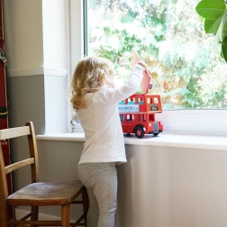 Oplev Londons skønheder med træ dobbeltdækker bus Le Toy Van. Dette ikoniske legetøj, designet med detaljer som realistisk skiltning og et aftageligt tag, tilbyder en fantastisk måde at udvikle børns fantasi og finmotorik.