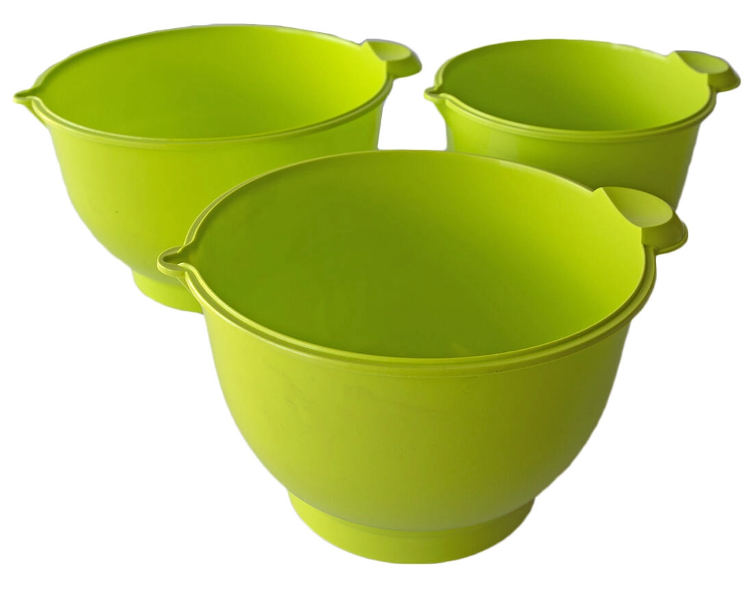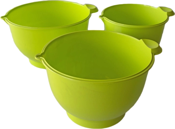 Let og holdbar plast sikrer nem håndtering og vedligeholdelse, skålene er stabelbare og sparer plads i køkkenet. Perfekte til konditorcremer, æggehvide-skum, salater og deje.