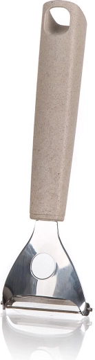 Opdag den pålidelige NATURAL-skræller med tværblad, som gør den daglige forberedelse af grøntsager og frugt enklere. Det holdbare rustfri blad sikrer glat og præcis skrælning, mens det lette og robuste håndtag i polypropylen med hvedeklid ligger behageligt i hånden. Takket være ophængsøjet kan den altid opbevares lige ved hånden.