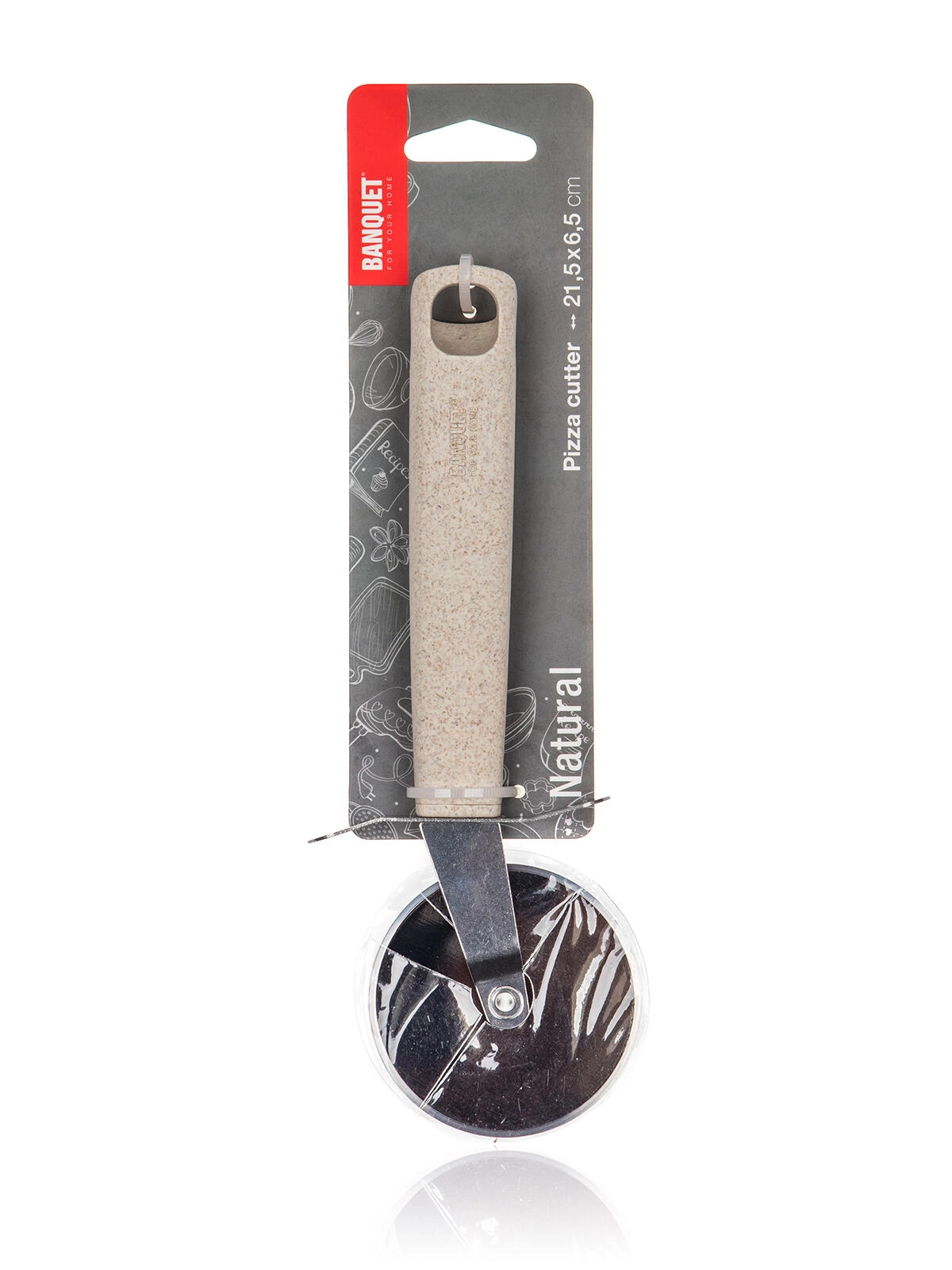 Den praktiske pizzaskærer NATURAL er ideel til hurtige og rene portioner af pizza og dej. Den tilbyder en skarp skive i rustfrit stål, et behageligt og sikkert greb af polypropylen med tilsætning af hvedeklid, et ophængsøje og mulighed for opvask i opvaskemaskine. Et fremragende valg til både hjemmekøkkener og professionelle køkkener.