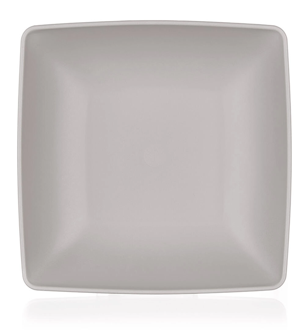 Stilfuld dyb firkantet tallerken CULINARIA i lattefarve med mål 17,5 × 17,5 cm, ideel til servering af supper, pasta eller salater. Fremstillet af holdbar plast, den er let, nem at rengøre og tåler opvaskemaskine. Det minimalistiske design med høje kanter passer til det moderne køkken og til hverdagens måltider.