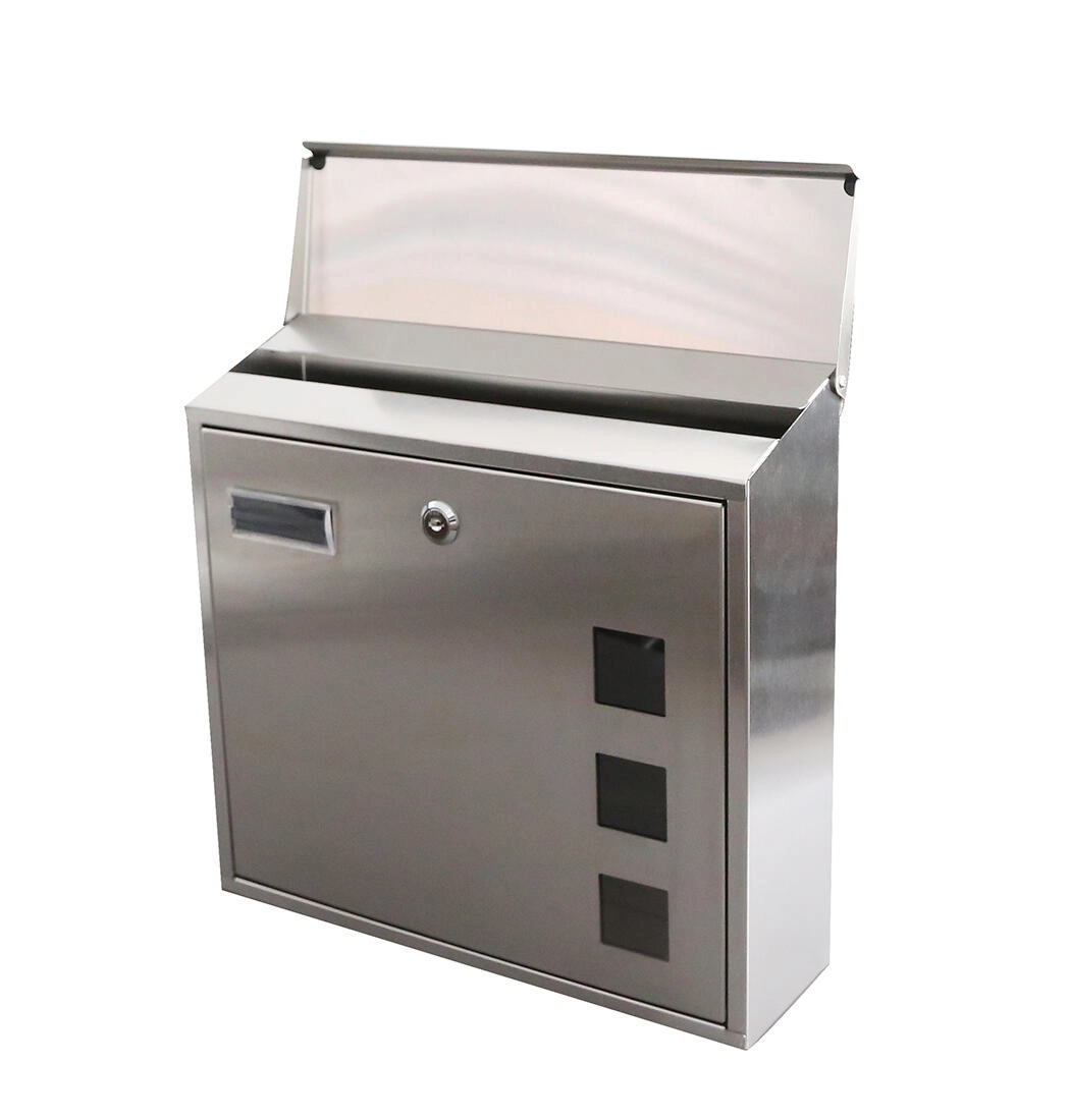 Denne postkasse i rustfrit stål er en praktisk og stilfuld løsning til daglig post. Rustfrit stål type 201 sikrer lang levetid og modstandsdygtighed over for vejrpåvirkninger. Øvre indkast gør det nemt at lægge breve, aviser og magasiner i, mens den forreste dør med nøgle beskytter indholdet mod uvedkommende.