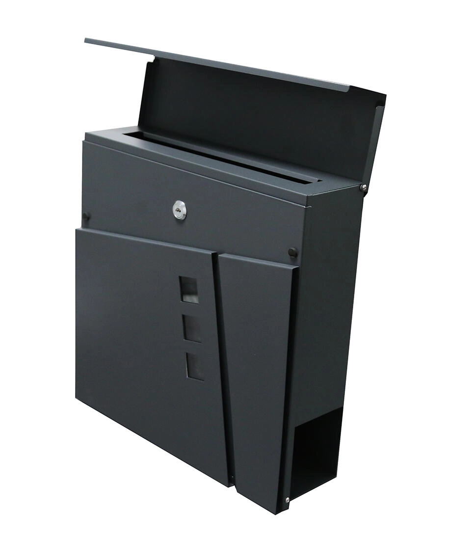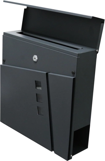 Den stilfulde og robuste postkasse TILES er et ideelt valg til både hus og hegn. Takket være topindkastet rummer den nemt breve, magasiner og reklamer, mens det nederste rør holder aviser pænt adskilt. Den antracitgrå finish passer perfekt til moderne facader og hegn.