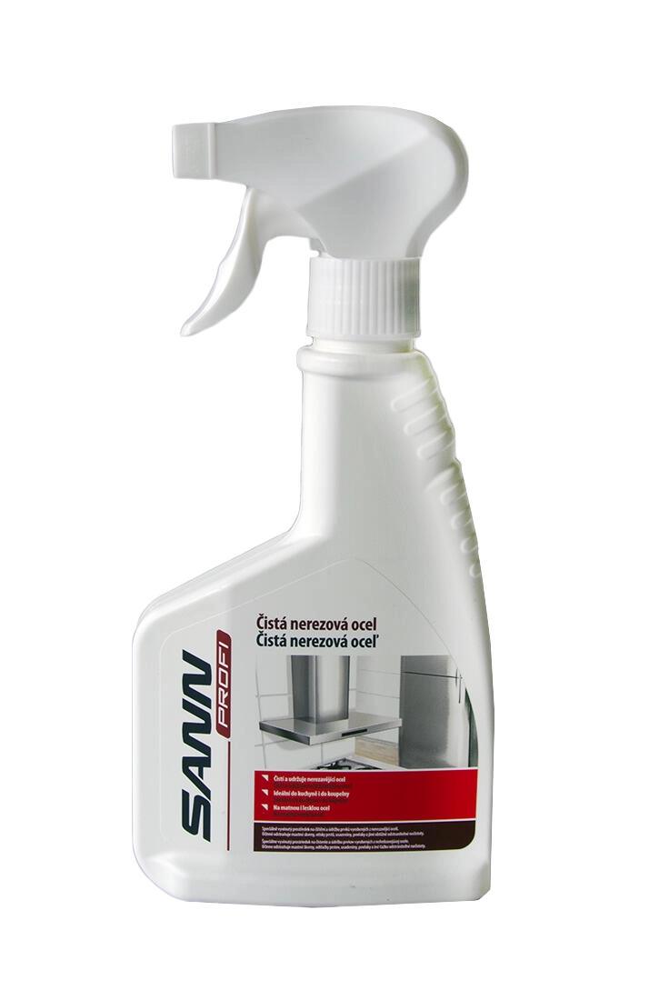 SANN PROFI rengøringsmiddel til rustfrit stål er et specialudviklet middel til daglig rengøring og vedligeholdelse af rustfri overflader i hjemmet og i professionelle miljøer. Fjerner hurtigt og effektivt fedtede pletter, fingeraftryk, aflejringer og genstridigt snavs og efterlader overflader uden striber og med genskabt naturlig glans.