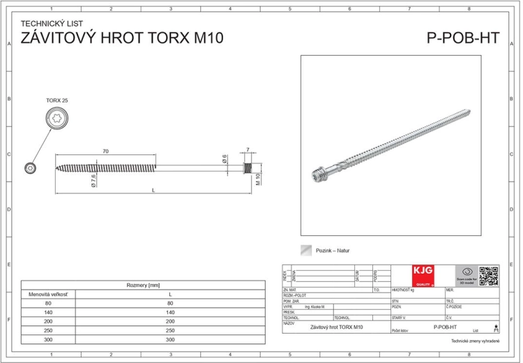 Fås i længderne 140 mm og 200 mm, hvor varianten på 200 mm er udstyret med en M10 gevindspids for fast forskruning og præcis styring. Skruen er velegnet til montering i træ, metaldele samt universal fastgørelse i kombination med egnet befæstelse.