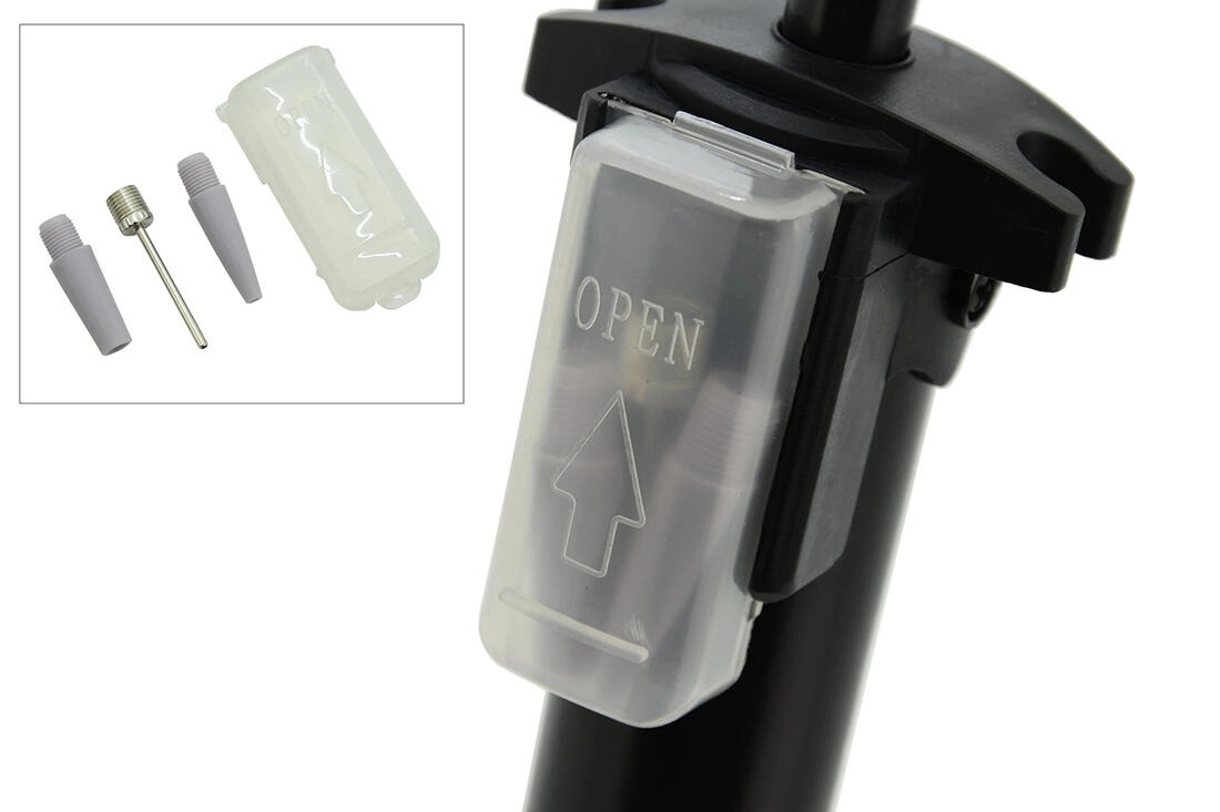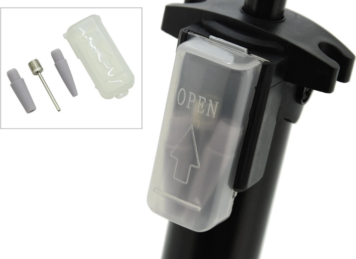 - Opbevaringsboks med mundstykker til bolde, madrasser, pools mv.