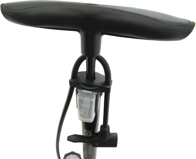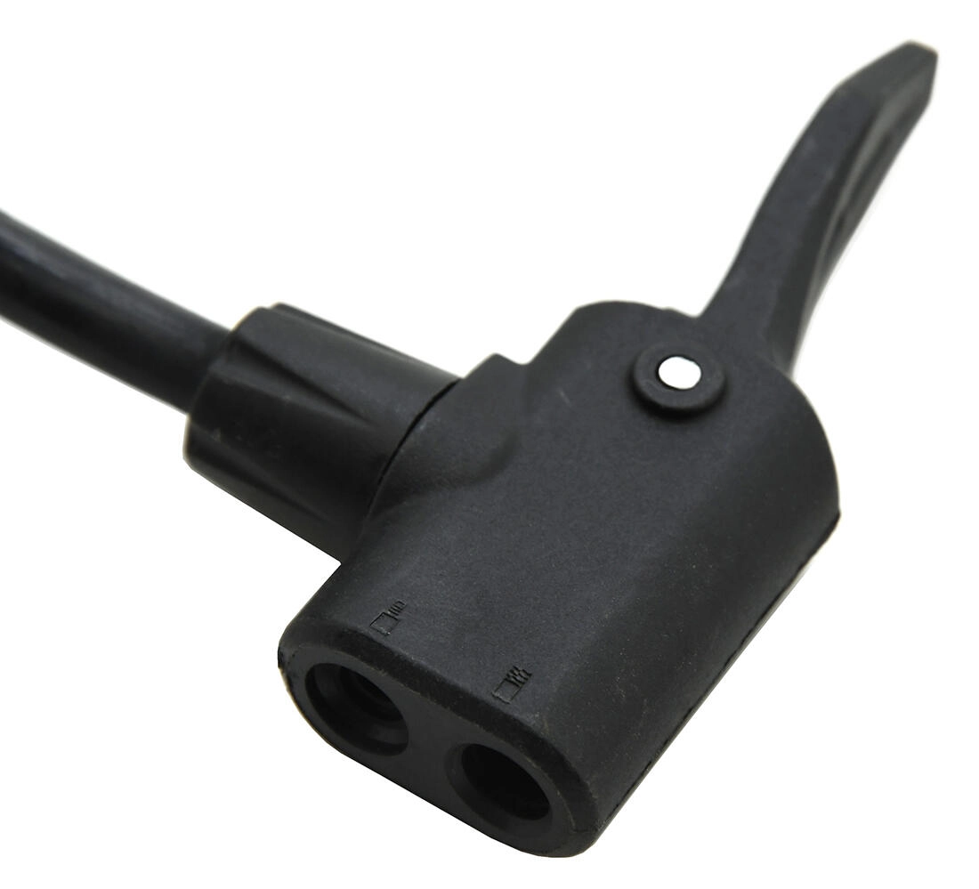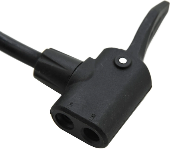 Takket være den dobbeltende adapter på slangen er den kompatibel med både bilventil (Schrader) og cykelventil (Presta/racerventil). På selve pumpens krop finder du en praktisk opbevaringsboks med adaptere til oppumpning af bolde, madrasser eller pools. Stabiliteten under brug forbedres af fodstøtten, og nem betjening sikres af det ergonomisk formede håndtag.