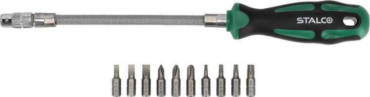 Gør arbejdet lettere med STALCOs fleksible skruetrækkersæt. Takket være den fleksible aksel kommer du nemt til dér, hvor almindelige værktøjer må give op. Sættet indeholder de mest anvendte bittyper, så du altid har det rigtige værktøj ved hånden.