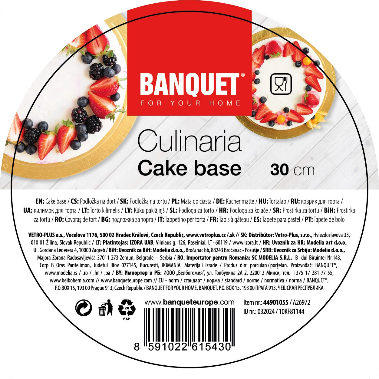 Dette kvalitets dobbeltsidede gyldne kageunderlag er en pålidelig base for enhver festdessert. Takket være den flerlags kartonkonstruktion med en tykkelse på 3 mm giver det høj styrke og stabilitet, mens den gyldne laminering på begge sider sikrer modstandsdygtighed over for fugt og fedt.