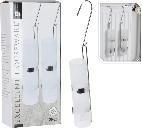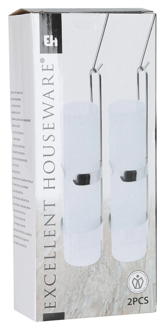 Praktisk rund radiatorfordamper med volumen 325 ml af glas og rustfrit stål, som effektivt øger luftfugtigheden i fyringssæsonen. Hjælper med at fjerne tør og irriterende luft i rummet, forbedrer indeklimaet i lejlighed og hus og bidrager til mere behagelig vejrtrækning. Pakken indeholder 2 stk. til at dække flere rum eller et større område.
