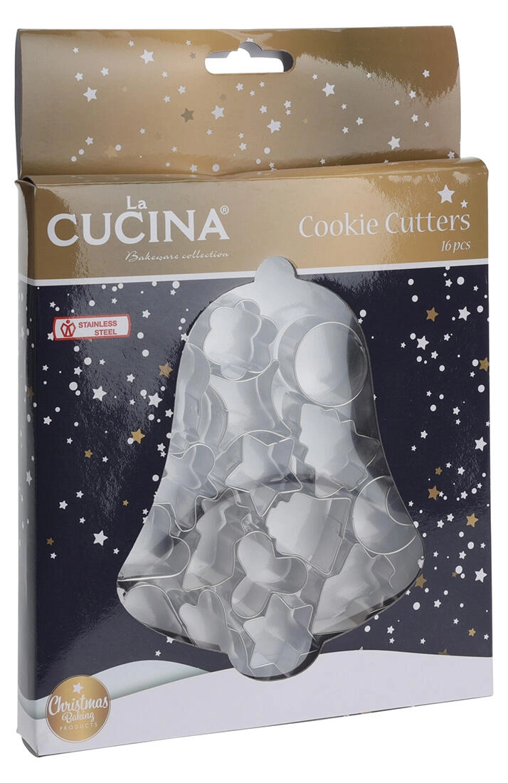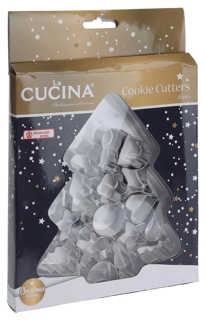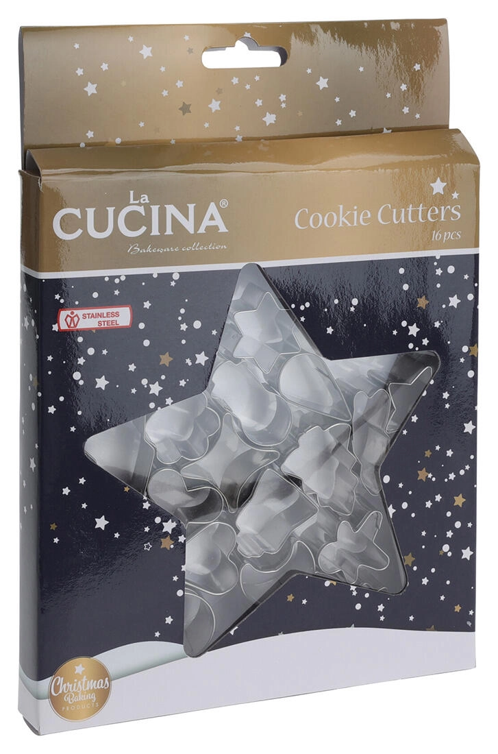 Dette alsidige sæt med 16 rustfri udstikkere er ideelt til både traditionel og moderne julebag. Takket være den solide konstruktion i kvalitets rustfrit stål kan du nemt udstikke rene og præcise former, som ikke mister faconen i ovnen.