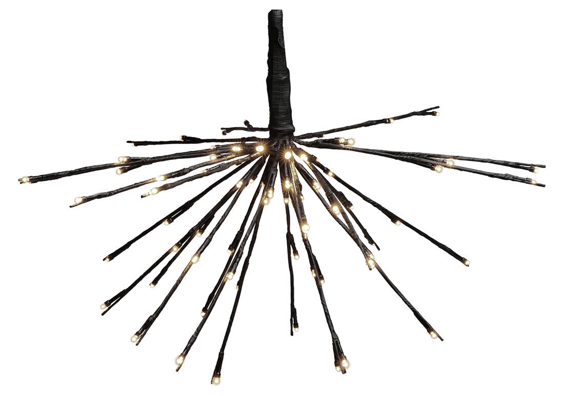 Stilfuld hængende dekoration med en diameter på 45 cm, der oplyser dit interiør med 72 energieffektive LED'er i varm hvid. Elegant sort udførelse og 24 arme skaber et moderne udtryk, ideelt til både hverdags- og højtidstemning.