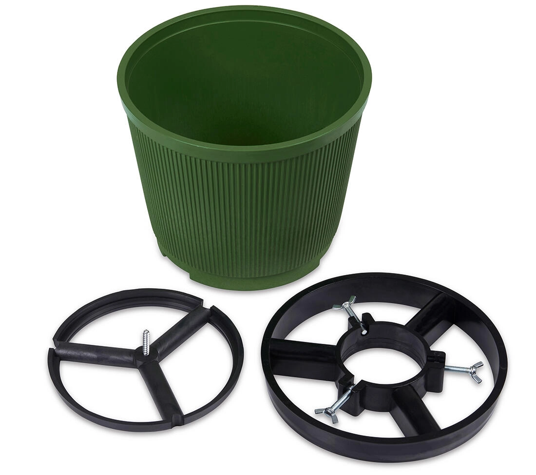 Det aftagelige plast-element gør rengøring og håndtering nemmere. For endnu større stabilitet kan basen fyldes med sand og vand. Foden er velegnet til en bred vifte af stammediametre takket være den store monteringsåbning.
