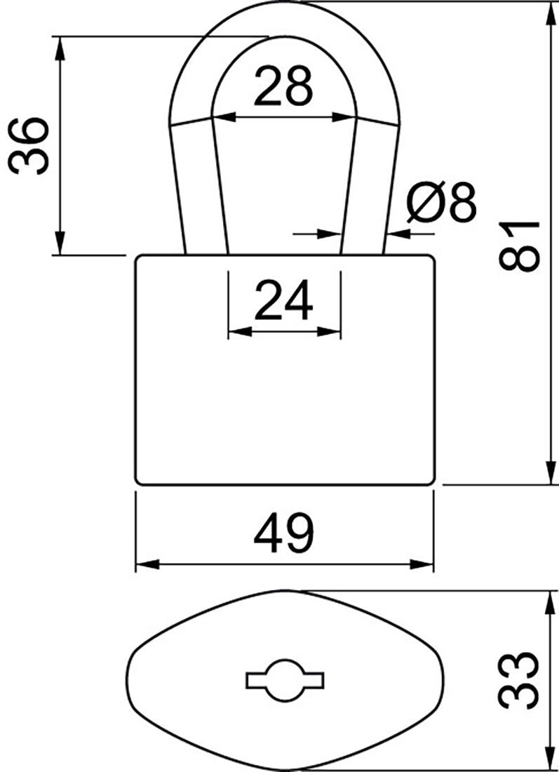 Denne robuste hængelås er designet til pålidelig sikring af skabe, havelåger, skure og skabe. Den enkelte lamelkonstruktion og kvalitetsmaterialer sikrer lang levetid selv under krævende udendørs forhold.