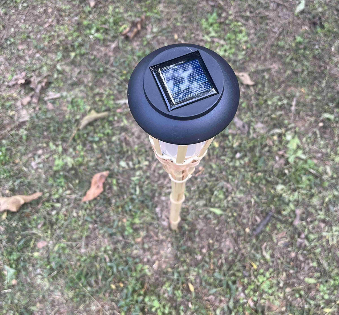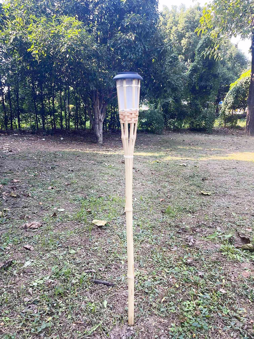 Nyd stemningsfuld udendørs belysning med et naturligt udtryk. Denne solcelledrevne bambusfakkel kombinerer elegant design med praktisk drift på solenergi. Det indbyggede polykrystallinske panel oplader batteriet om dagen, og faklen tænder automatisk om aftenen.