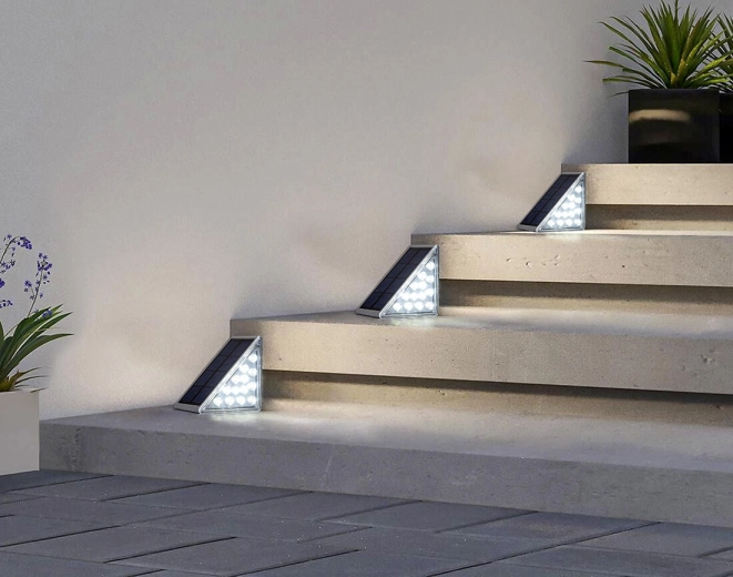Praktisk solardrevet trappelys med 13 LED-punkter giver klart hvidt lys for sikker færden efter mørkets frembrud. Takket være solcellestrøm kræver det ingen kabler eller kompliceret installation og er klar til brug med det samme.