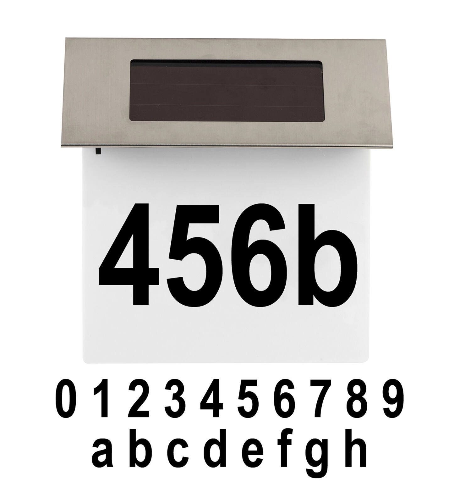 Den bagbelyste hvide plade og de kontrastfulde klistermærker sikrer fremragende læsbarhed af dit husnummer efter mørkets frembrud.