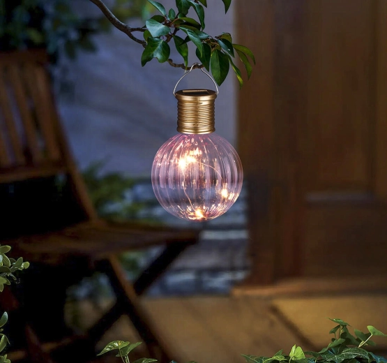 Den elegante lyseviolette solcellelampe med en diameter på 8,5 cm og en højde på 11,2 cm er ideel til aftenstemning og blid dekorativ belysning. De integrerede 4 LED’er giver energibesparende og pålidelig belysning uden behov for eltilslutning. Med krogen hænger du den nemt på en gren, pergola eller vægkrog.