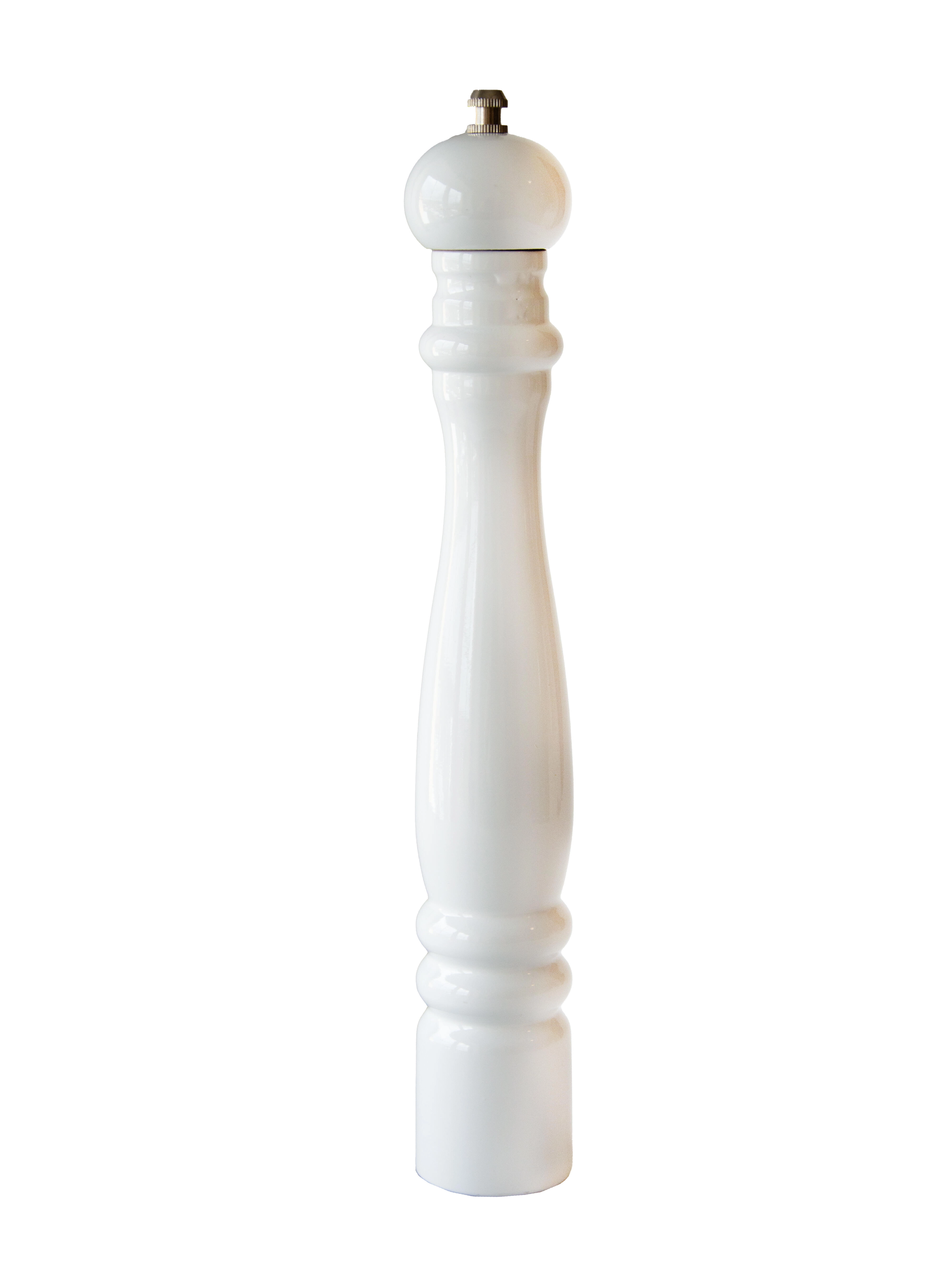 Oplev kvalitet og tidløst design: den høje træpeberkværn (36 cm) ligger godt i hånden og sikrer jævn kværning med sin glatte drejning. Vælg mellem elegante farver – sort, hvid og mintgrøn – som passer til både moderne og klassiske køkkener.
