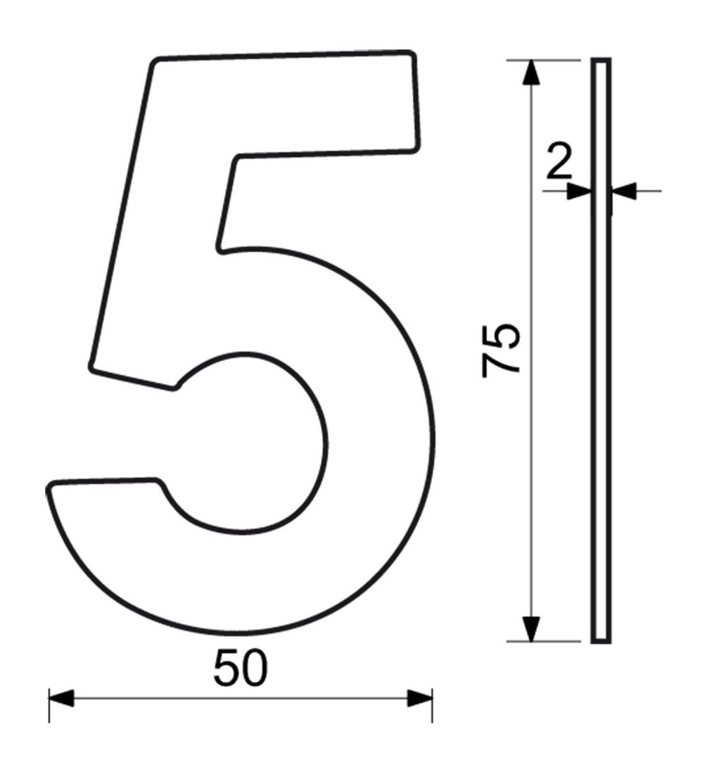 Det stilfulde husnummer 5 i rustfrit stål i fladt “2D”-design giver din facade et moderne udtryk. Den matte sorte overflade virker elegant, og takket være materialets høje kvalitet er nummeret modstandsdygtigt over for vejrpåvirkninger.