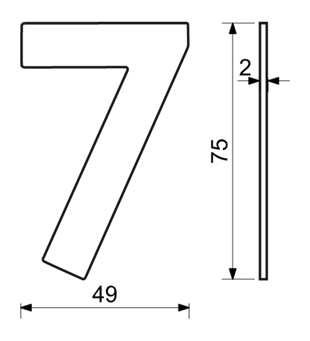 Elegant husnummer 7 med en højde på 75 mm i kvalitets rustfrit stål i mat sort udførelse. Nem montering med klæbning ved hjælp af dobbeltklæbende 3M-tape uden boring. Velegnet til glatte og middel-ru overflader. Fladt 2D-design giver et moderne udtryk og lang levetid.