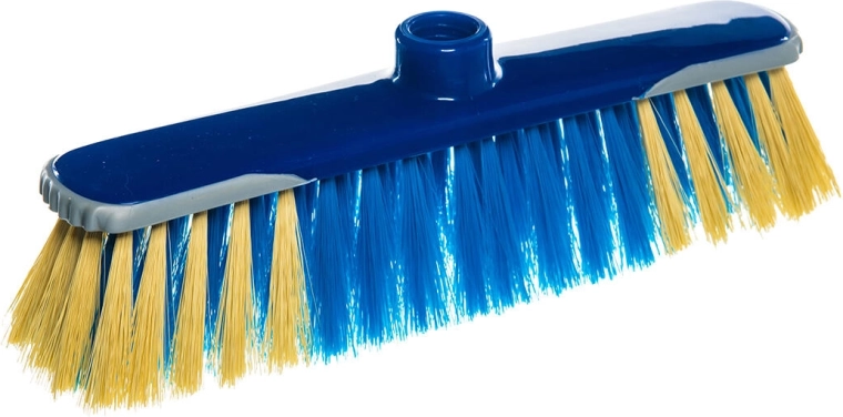 Universel plast-fejekost med en bredde på 28 cm og grov gevind for nem påskruning af skaft. Farvede Polymex-fibre sikrer effektiv fejning i almindelige husholdninger.