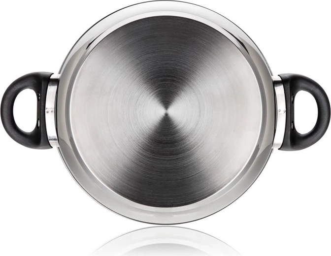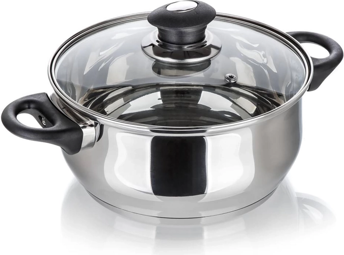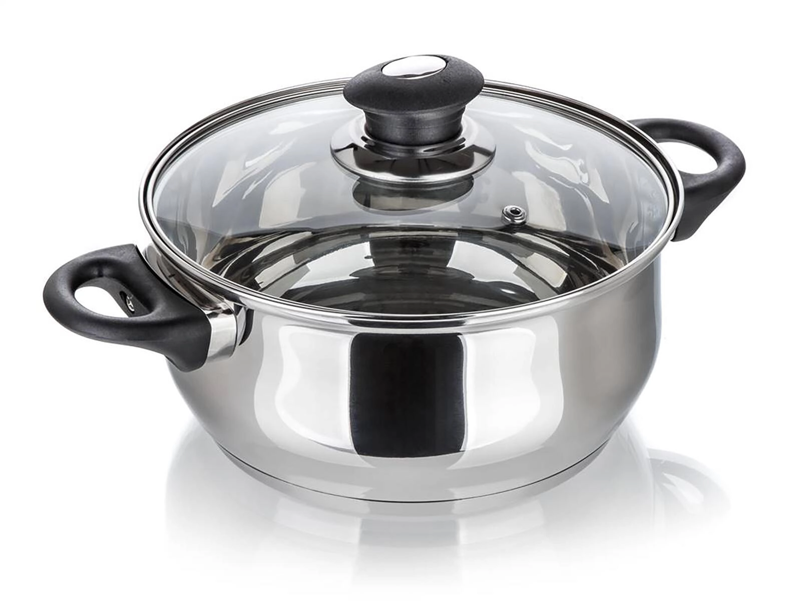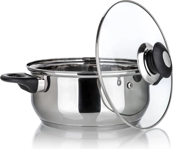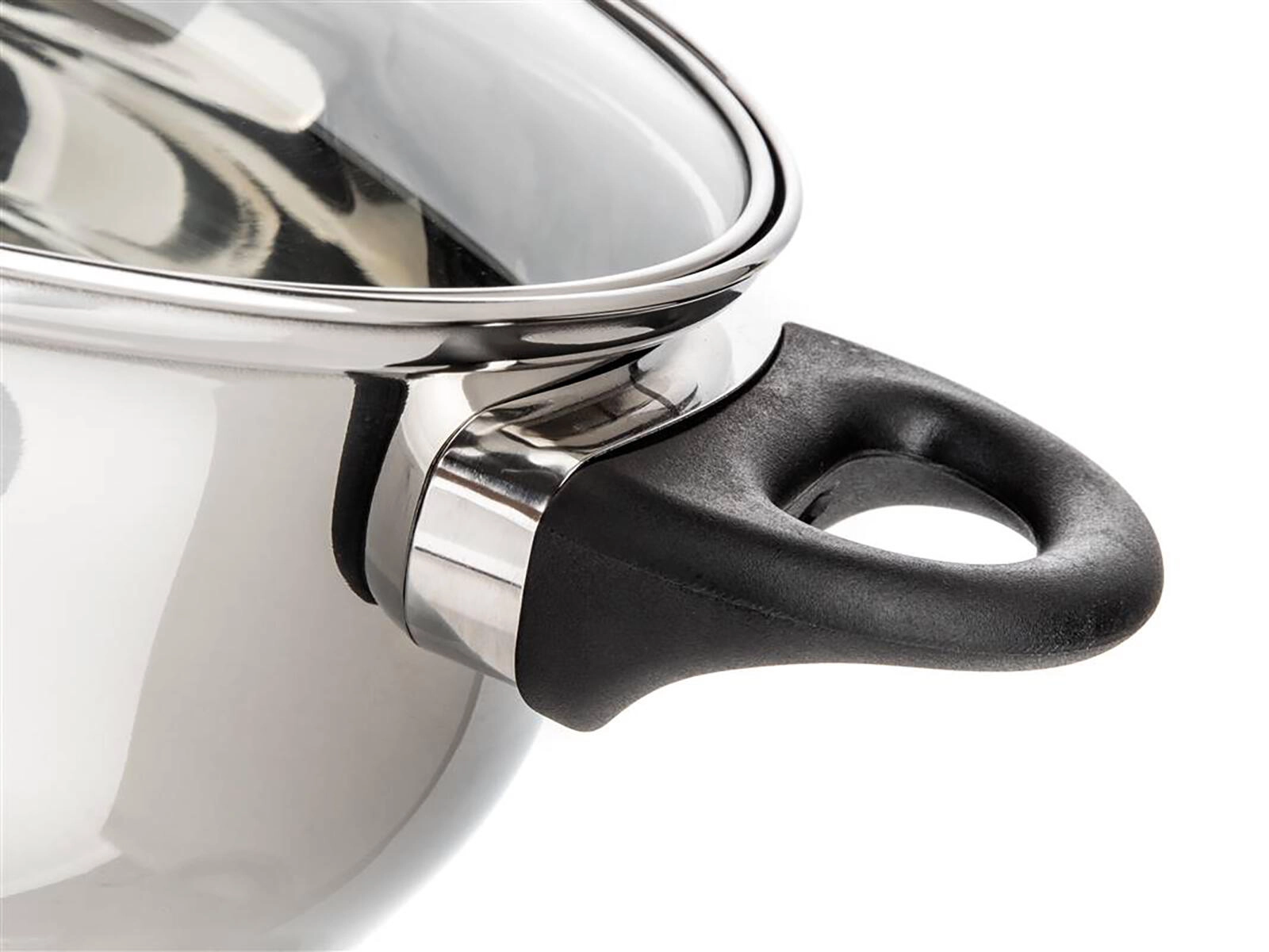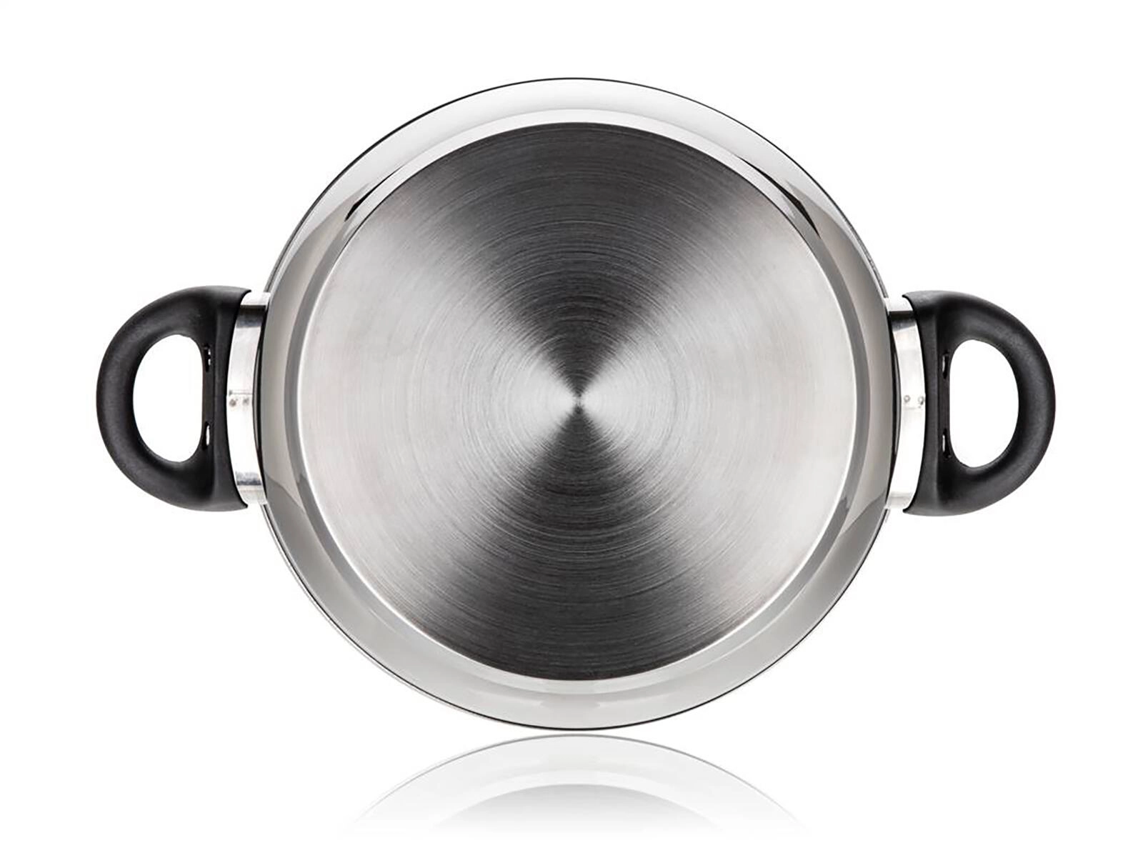 Rustfri stålkasserolle Super Value kombinerer alsidig anvendelse og pålidelig ydeevne. Med glaslåget har du fuld kontrol over madlavningen, mens det robuste rustfri stålkorpus med blank finish giver dit køkken et elegant udtryk. Ergonomiske bakelitgreb og knop sikrer et sikkert og behageligt greb selv ved højere temperaturer.