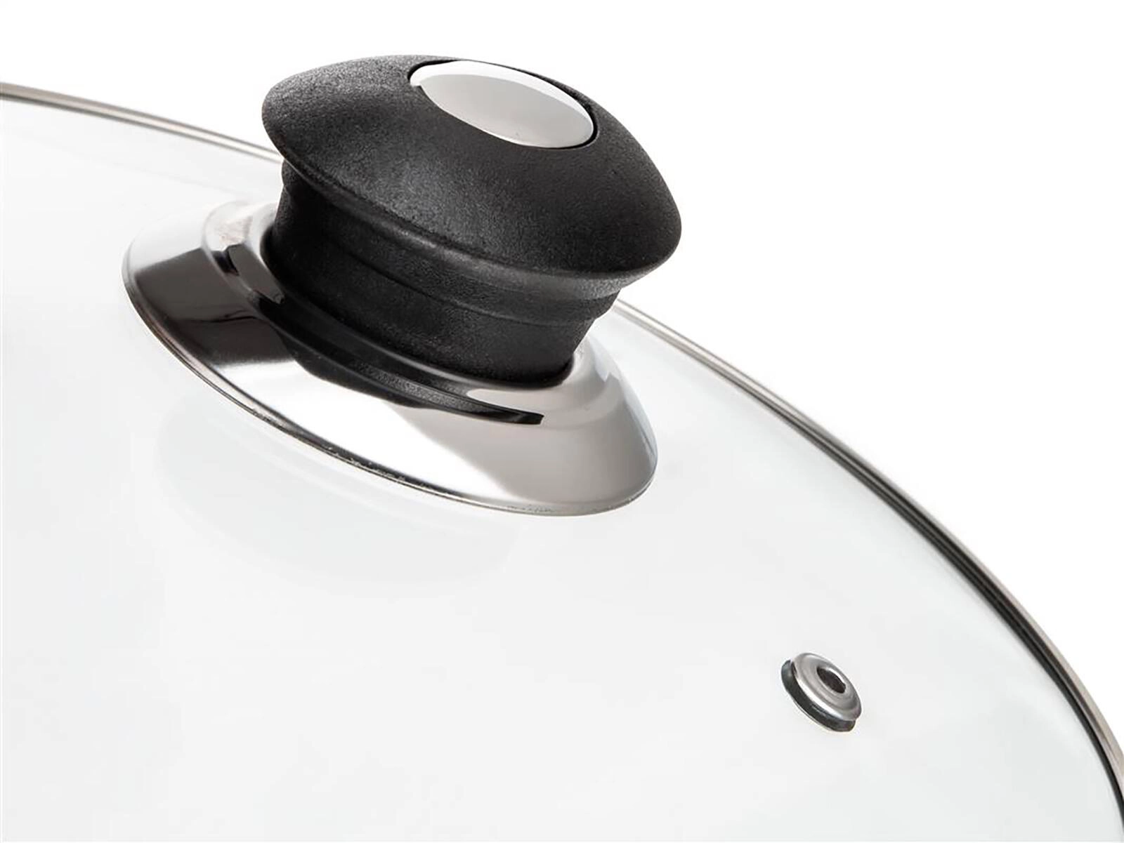 Det gennemsigtige låg med dampeventil gør det muligt at følge madlavningen uden at løfte låget og sparer dermed varme og energi.