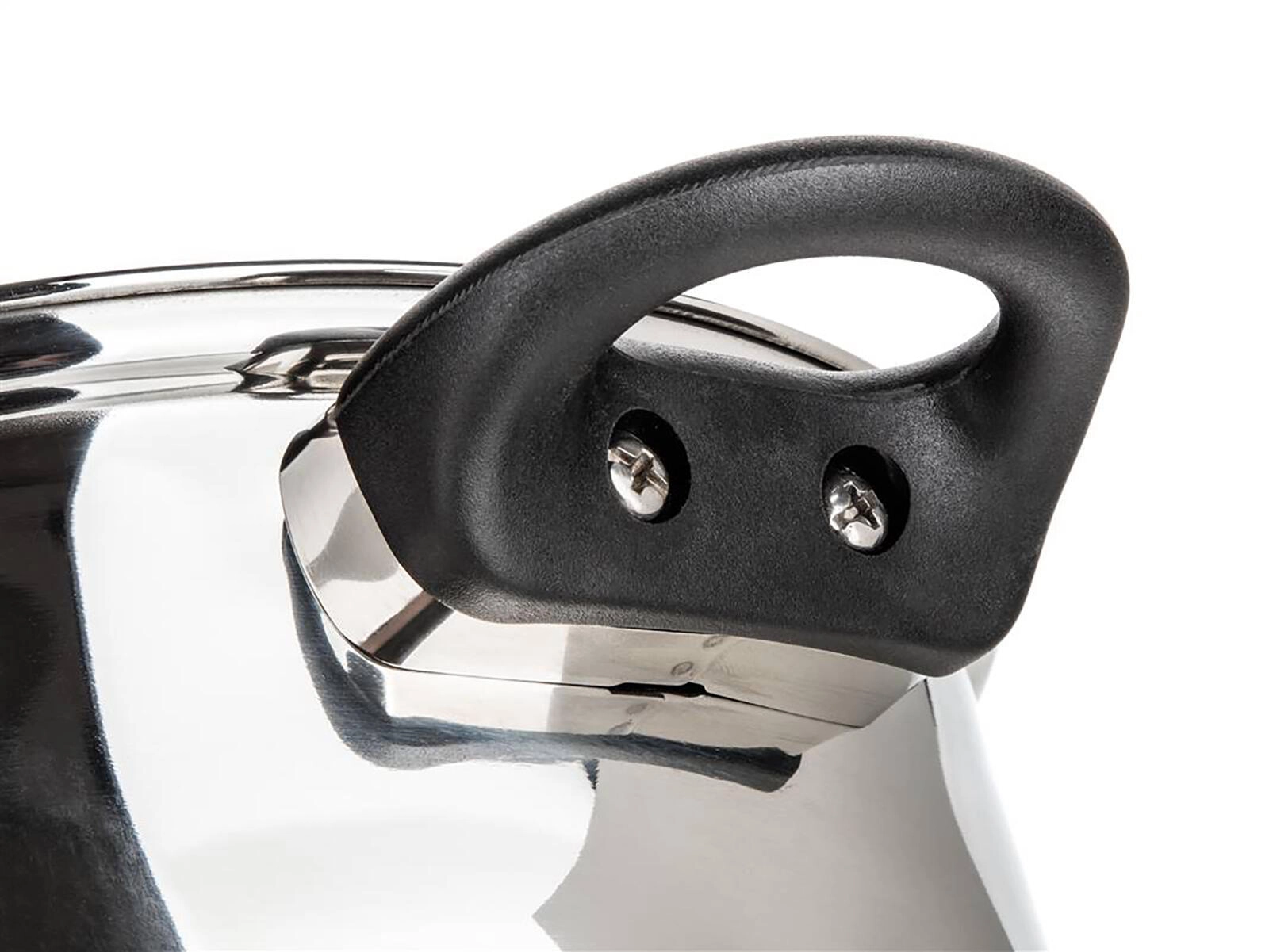 Ergonomiske bakelitgreb og knop forbliver køligere at røre ved og gør transport og håndtering nemmere.