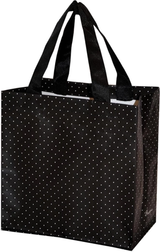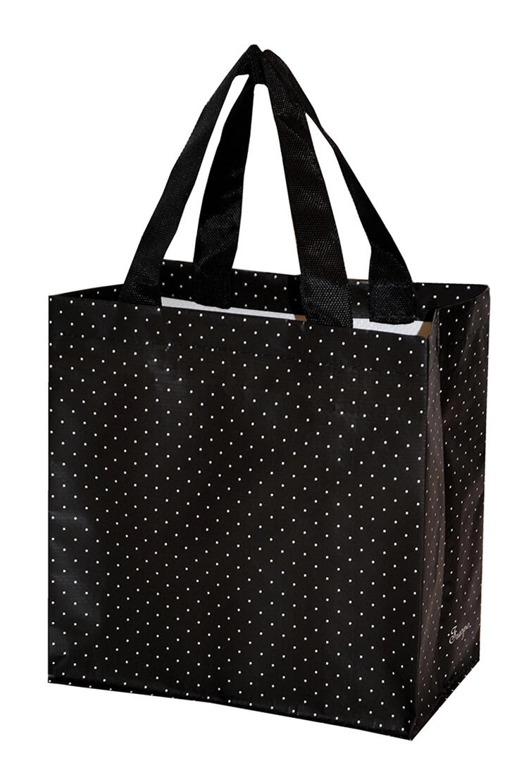 Denne stilfulde pose i sort-hvidt prikket design er ideel til daglige indkøb og hurtige ærinder. Takket være det robuste materiale af vævet lamineret polypropylen klarer den en bæreevne på op til 10 kg, samtidig med at den bevarer lav vægt og lang levetid. De kompakte mål 27 × 27 × 15 cm og en volumen på 10 l sikrer, at den nemt passer i skabet, bilen eller håndtasken.