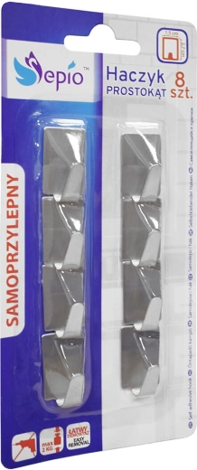 Praktisk sæt med 8 selvklæbende kroge i rustfrit stål til badeværelse, køkken og entré. Takket være den dobbeltsidede klæbestrimmel er monteringen hurtig og uden boring, så du undgår at beskadige fliser og vægge. Krogene er modstandsdygtige over for fugt, har et elegant firkantet design og kan bære op til 2 kg.