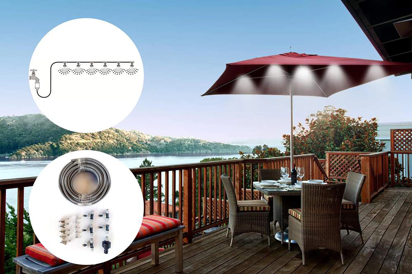 Fin forstøvning køler luften og forbedrer komforten under pergolaen, på altanen eller terrassen. Ideelt til sommerafslapning og grill.