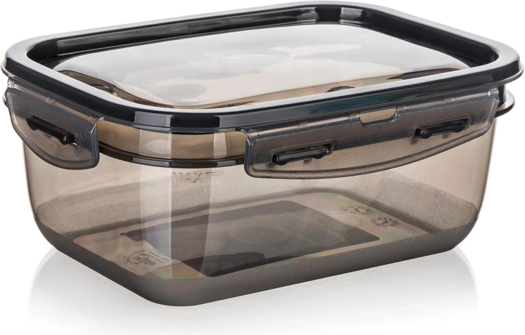 CADENZA-dåsen er en pålidelig hjælper i køkkenet og på farten. Den rektangulære form sparer plads i køleskab og spisekammer, mens det røgfarvet transparente design giver hurtig visuel kontrol af indholdet. Den solide kliklås hjælper med at holde maden frisk længere og forhindrer utilsigtet åbning under transport.