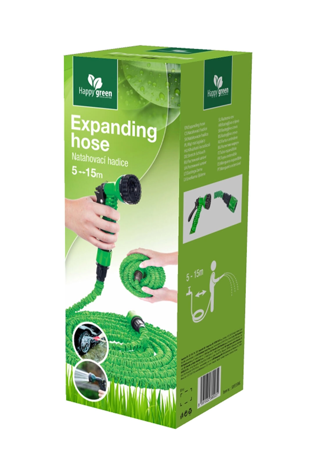 Praktisk udtrækkelig havevandslange 15 m i grøn farve, ideel til vanding af bede, græsplæner og altankasser. Når den fyldes med vand, forlænger den sig automatisk op til tredobbelt af sin oprindelige længde, og den er let, kompakt og nem at håndtere. Pakken indeholder en vandingspistol for behagelig og præcis vanding.