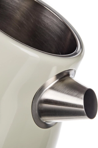 Den stilfulde dobbeltvæggede elkedel EBBA med en kapacitet på 1,7 l kombinerer elegant rustfrit stål og et praktisk analogt termometer til præcis temperaturkontrol. Den tilbyder effekt på 1850–2200 W for hurtig kogning, 360° drejesokkel, automatisk og manuel slukning samt overophedningsbeskyttelse. Nem vedligeholdelse sikres af et aftageligt filter mod urenheder.