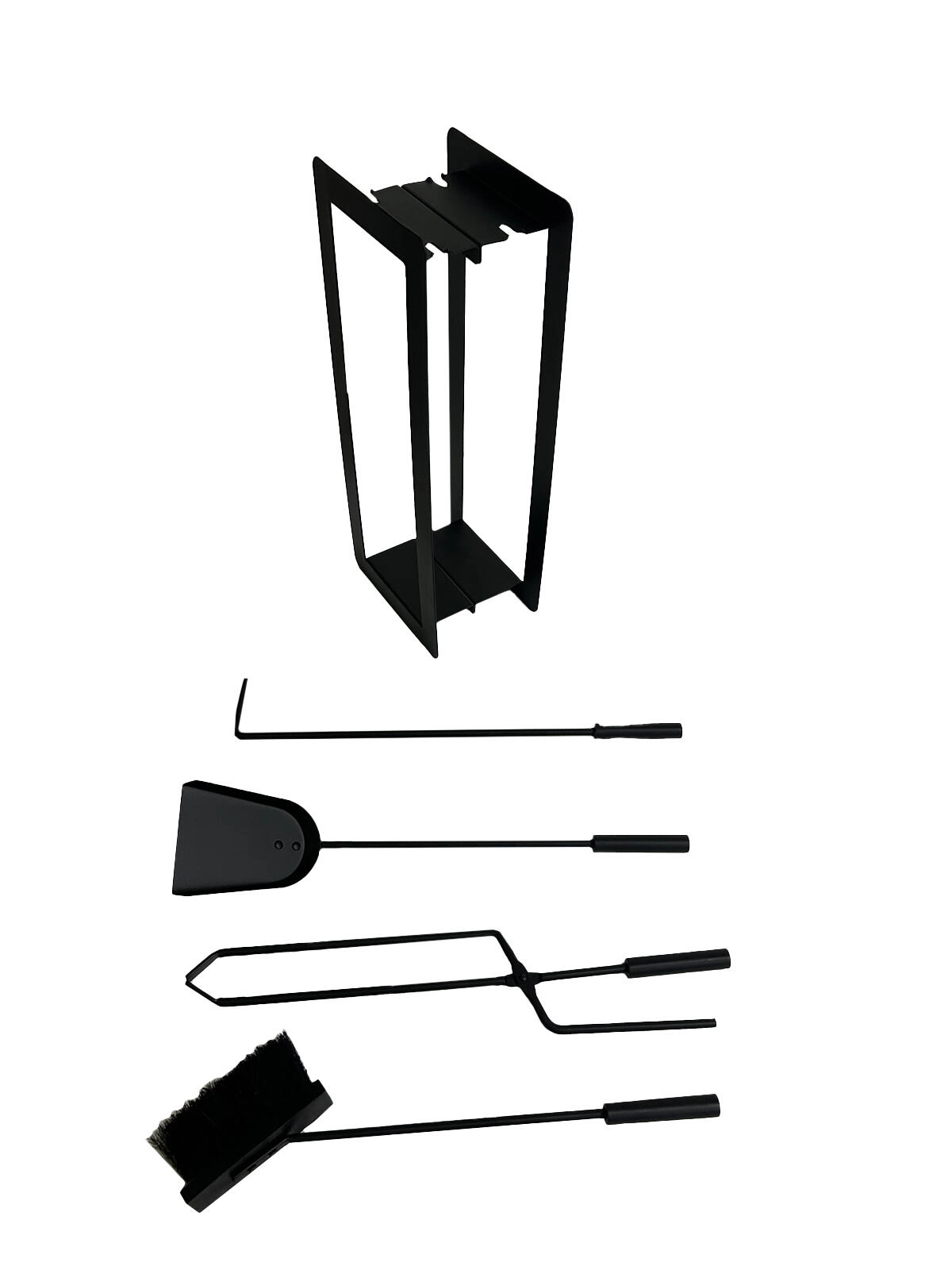 Det åbne metalstativ holder redskaberne altid lige ved hånden og bevarer området omkring pejsen rent og pænt.