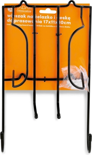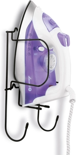 Hold styr på vasketøj og skab med denne robuste vægmonterede holder til strygejern. Dens solide metalkonstruktion med sort lakering sikrer lang levetid, mens den praktiske øverste vugge holder strygejernet sikkert, og de nederste kroge bruges til at hænge ledning eller strygebræt. Nem montering – rawlplugs og skruer medfølger i pakken.