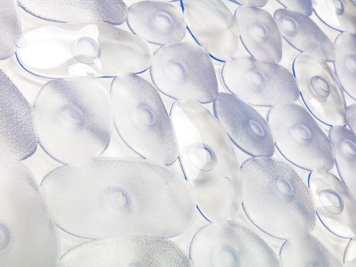 Snesevis af sugekopper på undersiden holder måtten sikkert på plads og reducerer markant risikoen for at glide på våde overflader.